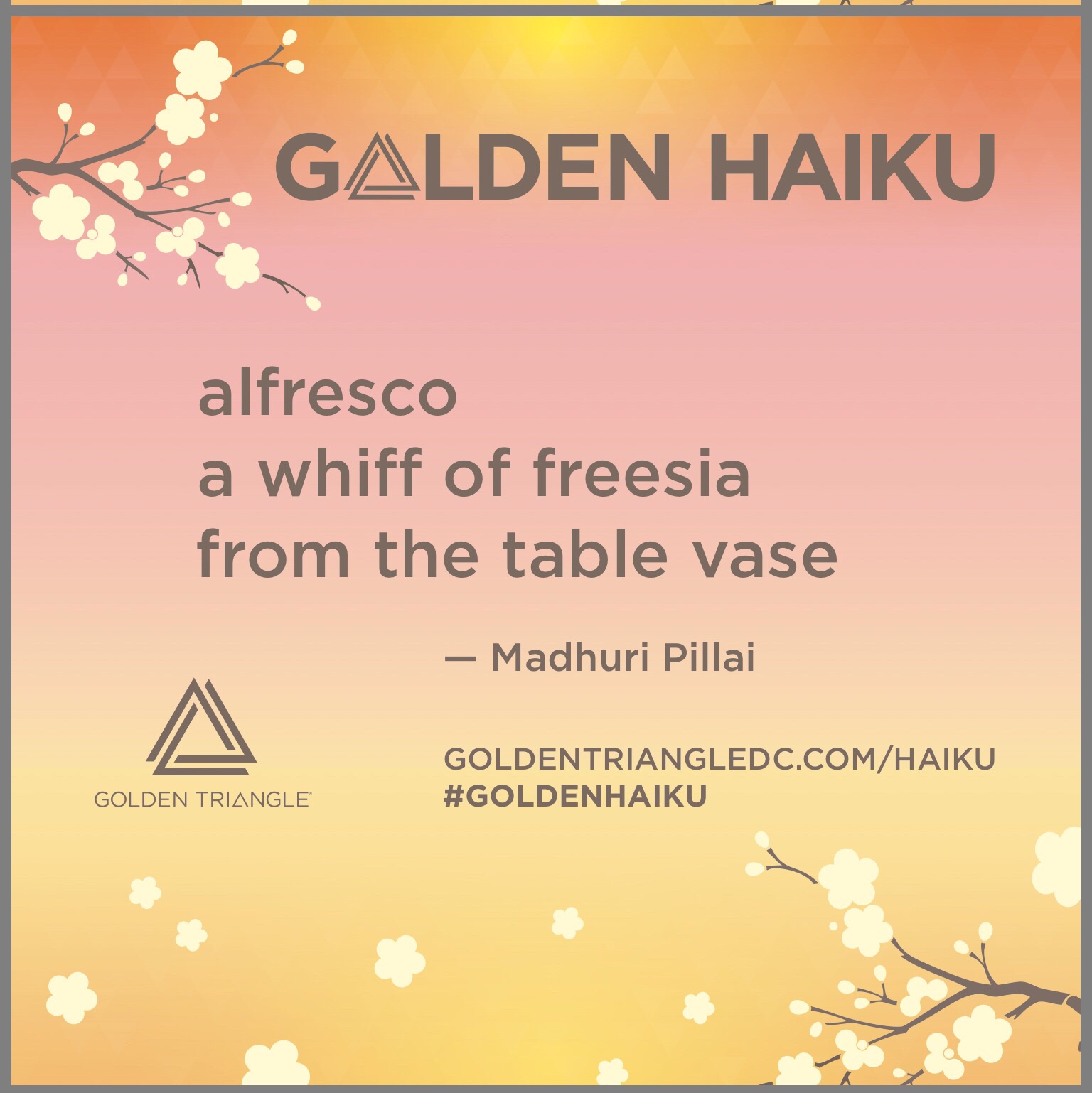 #Haiku Happenings #2: Madhuri’s latest haiku appears in the Golden Triangle Haiku Competition!