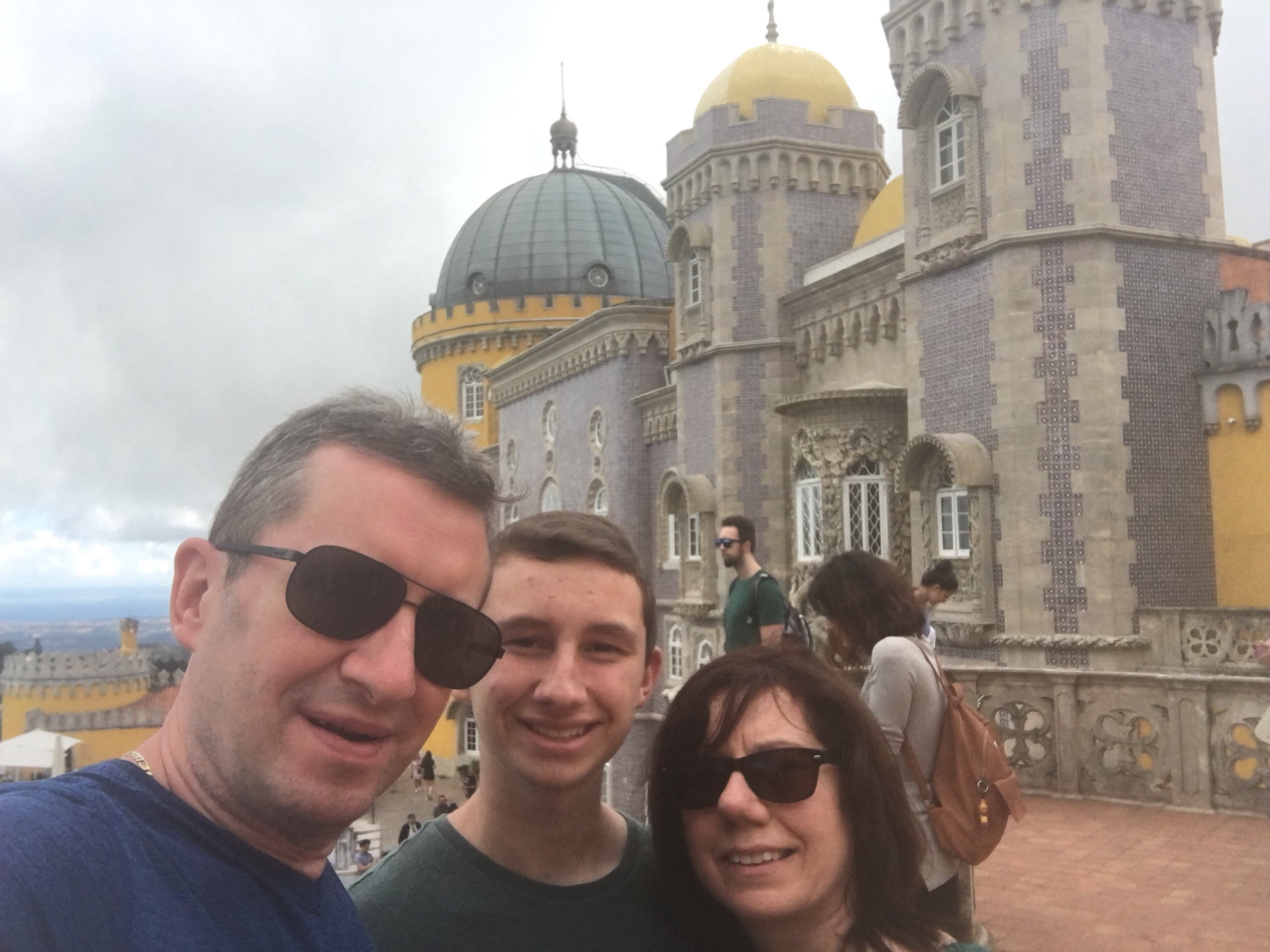 a quick car trip to the Torre da Belรฉm. Too long a line to climb, so we selfie-pose.