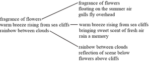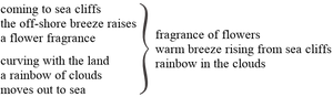 starts with two haiku by Jane Reichhold (in blue) to be used to create a “fusion” haiku,