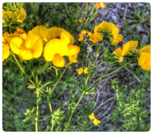 Closeup of birdfoot trefoil which spreads as a wild ground cover