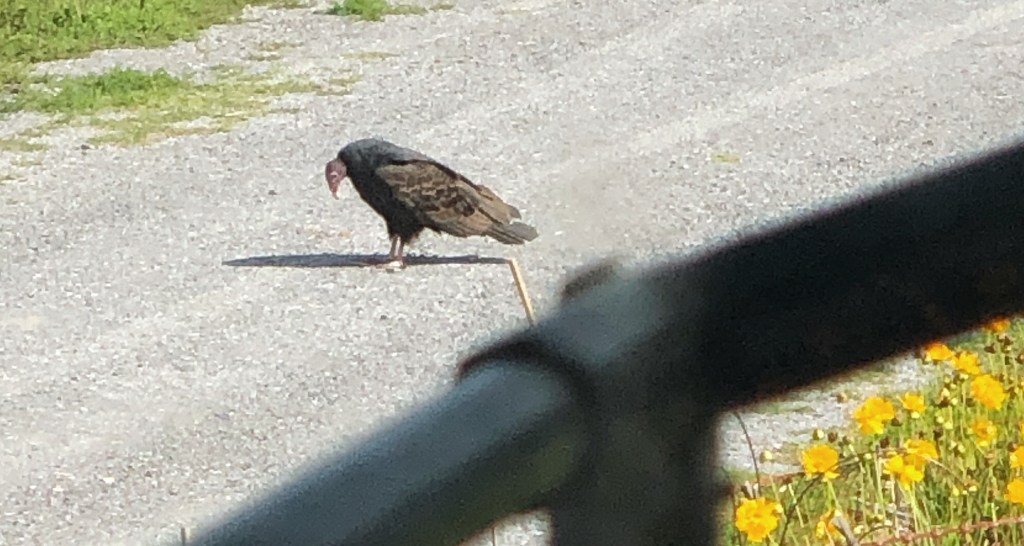 The turkey on my driveway appears to be contemplating his shadow. A radio voice intones “this is well-founded in reality”. I snap a photo through the window.