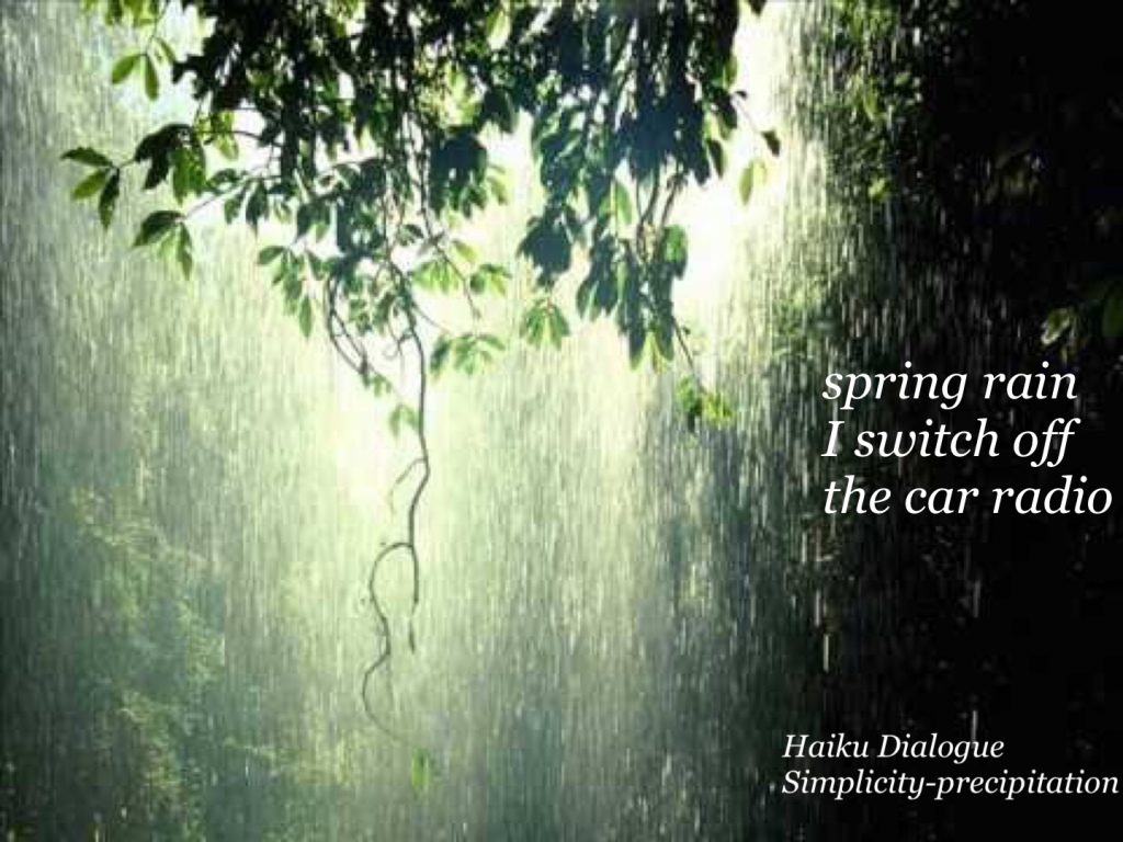 It’s Wednesday – The Haiku Foundation’s Haiku Dialogue day and glad to see my #haiku featured. This week’s theme was Simplicity—precipitation. Haiku that invoke the simple perfection of a moment in time.